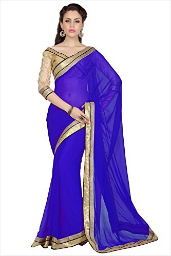 Designersareez Women"s Chiffon Saree Free Size Royal Blue