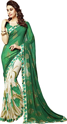 Mannequin Store Women"s Indian Designer Chiffon Saree With Unstitched Blouse