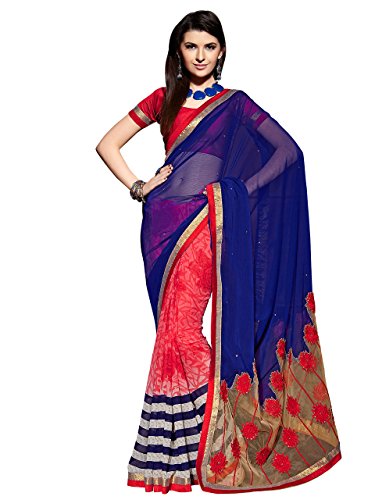 Disclaimer: product colour may slightly vary due to photographic lighting sources or your monitor settings.Saree Colour:-Blue & Pink,, Blouse Colour:-Red