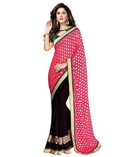 Shonaya Brown&Pink georgette Heavy Embroidery Saree With Unstitched Blouse Piece