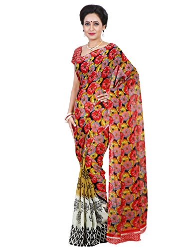 Shonaya Women"s Georgette Printed Sarees With Unstitched Blouse Piece