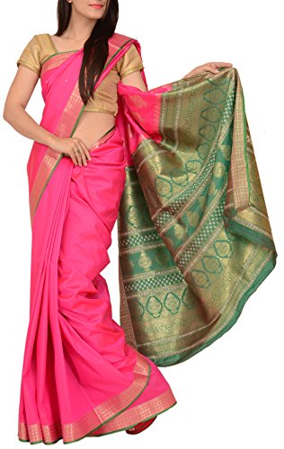 – Blouse piece is cut from one end of the sari. The end of sari from which blouse is cut is hemmed. The cut end (frayed end) of the blouse piece is not hemmed as this needs to be stitched as per customized measurement. Add a traditional touch to your personality with these sarees. Perfect for festive occasions and parties. Ideal as a gifting option.
